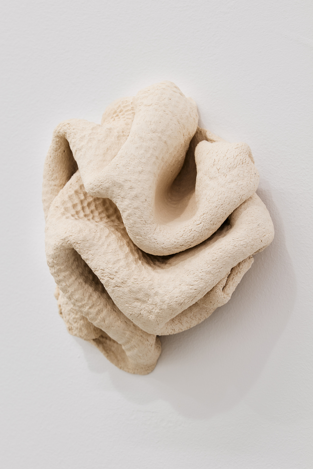 Berchtold also deliberately uses cheeky and humorous titles for the "Frottee" series. "Meister Propper", "Feuchter Furz" or "ridin' dirty" are tongue-in-cheek reminders of where the surface structures of the ceramic sculptures come from: From textiles of the private household and personal hygiene. However, instead of including the toil and social devaluation that often accompany unpaid household chores in the titles of the works, Berchtold gives them a playful lightness. "sorry to be real", the dirt that we ourselves have created ironically apologizes to us. "Sorry not sorry", he might also say.