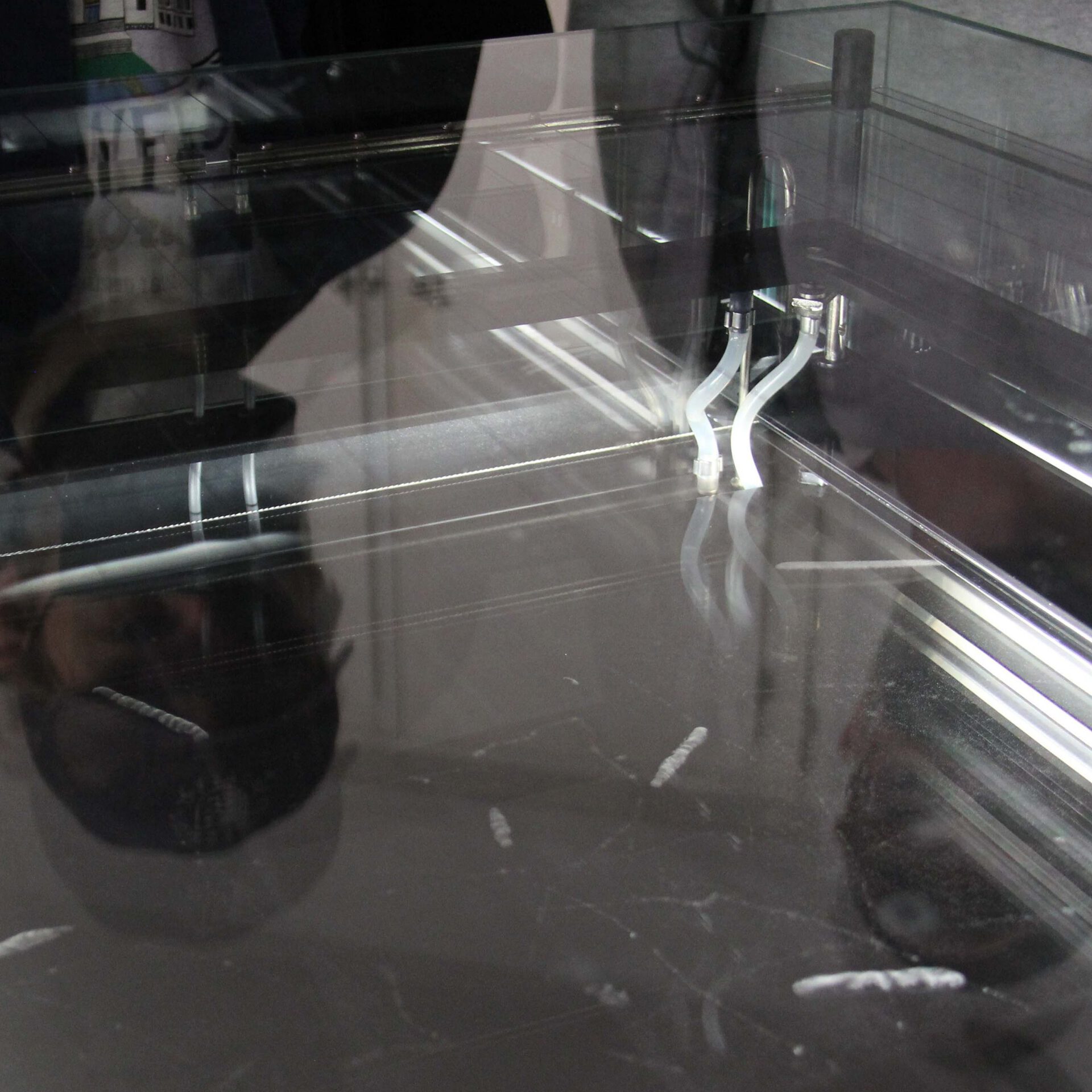 BB: Eigentlich gab es jedes Mal eine Art Aufführung, nur immer im persönlichen Rahmen. Der Fokus lag auf dem Prozess und weniger dem Produkt. Wie vorhin erwähnt, hat uns Corona nun auf diese neue Bahn gelenkt. Durch das Konzipieren von Förderanträgen kam eine neue Klarheit in die Arbeit. Ein erster Schritt der "Erfahrbarmachung" unserer Creative Labs für ein Publikum war ja bereits die Gründung eines Labels, das mittlerweile über 20 Vinyl-Veröffentlichungen hinter sich hat – viele davon mit Produktionen, die auf den Residencies entstanden sind. Durch die Erweiterung in den Sektor der Bildenden Kunst war schnell klar, dass es in eine Ausstellung münden wird. Das Besondere für die Besucher*innen ist, dass wir mit MONOM / 4DSOUND zusammenarbeiten. Diese Hörerfahrung lässt sich nicht simulieren. Man muss hingehen und es erleben und in diesem Sinne ist es dann eben auch keine reine Dokumentation, sondern es entsteht wieder etwas Neues.