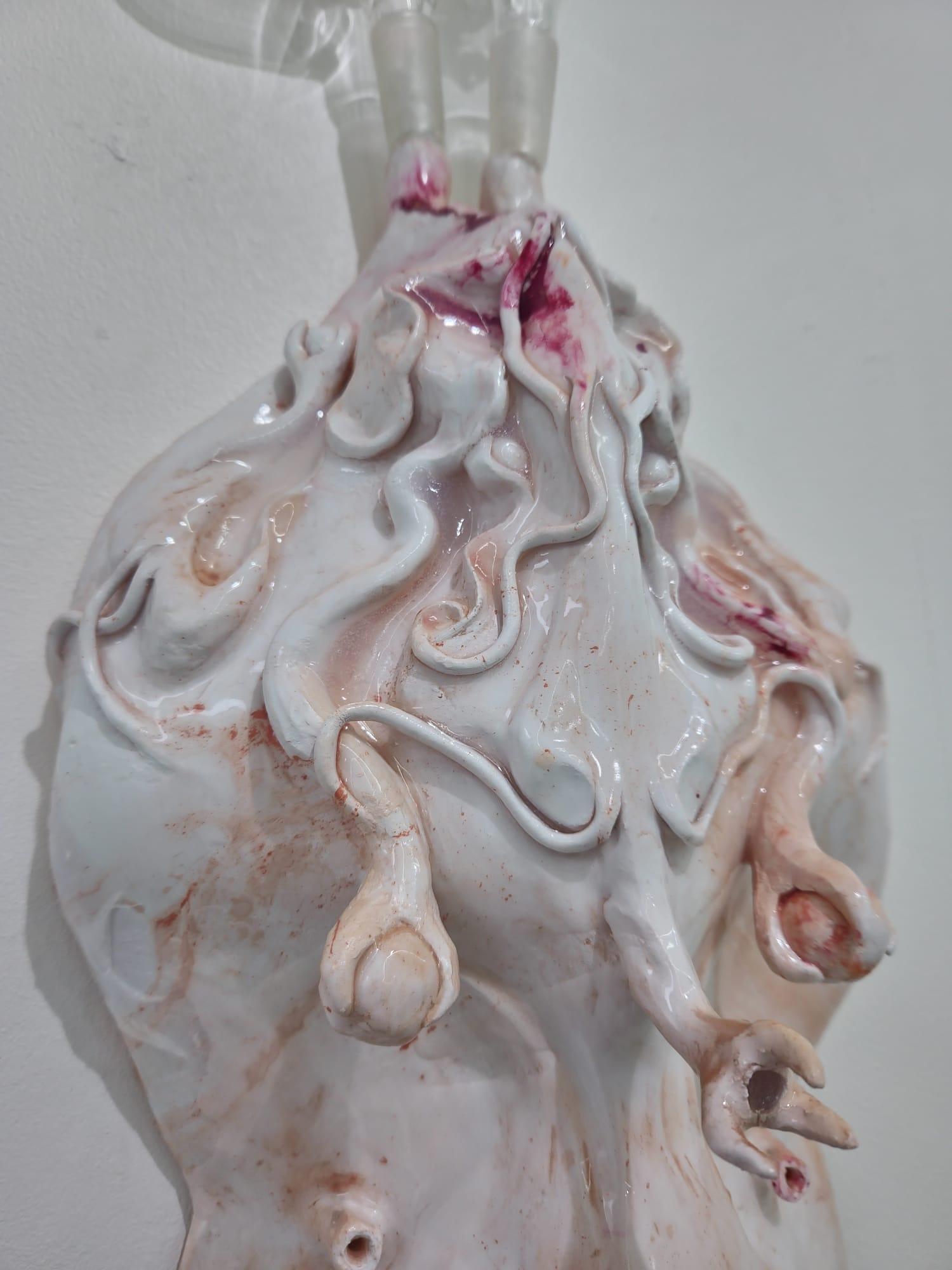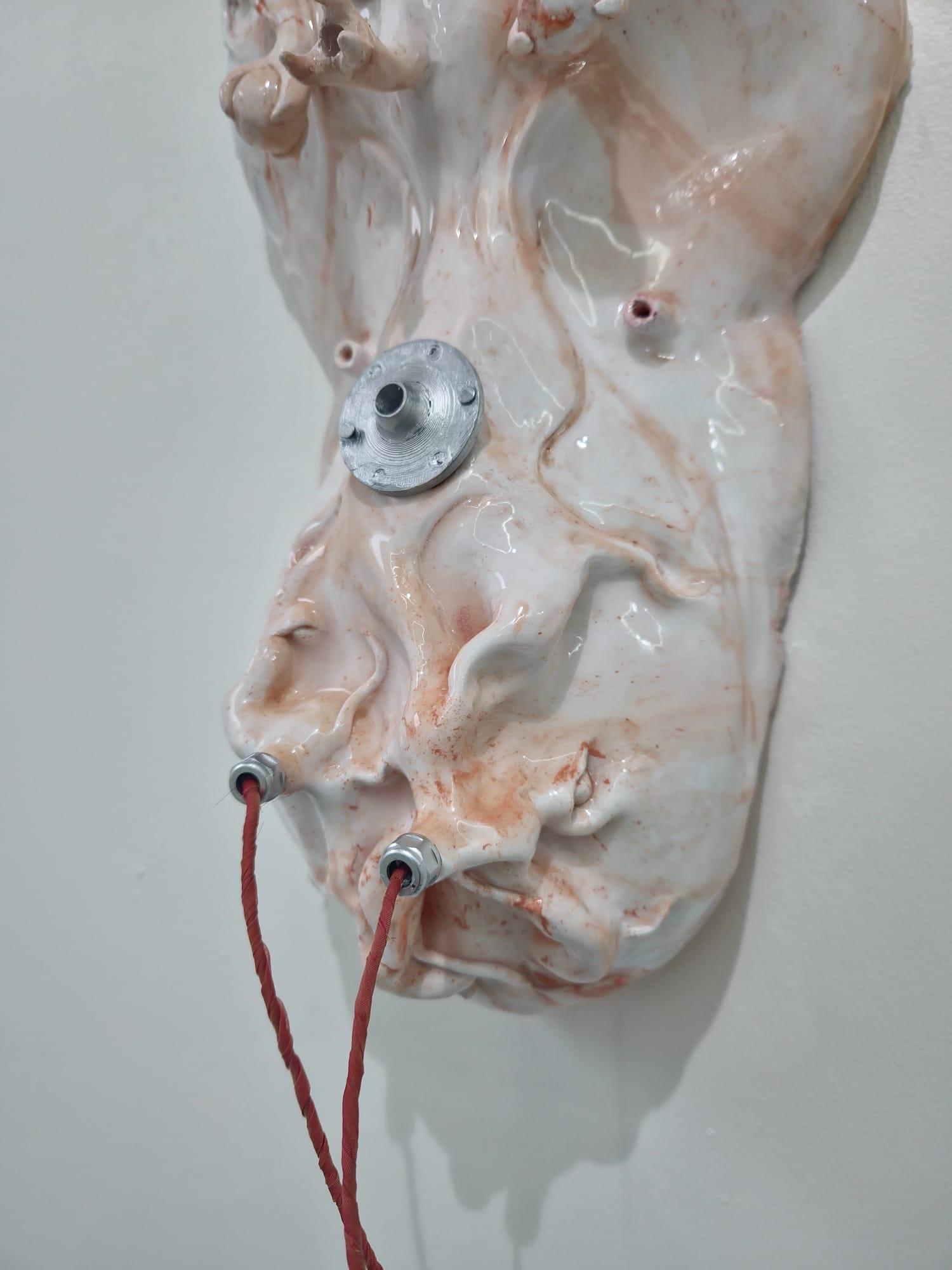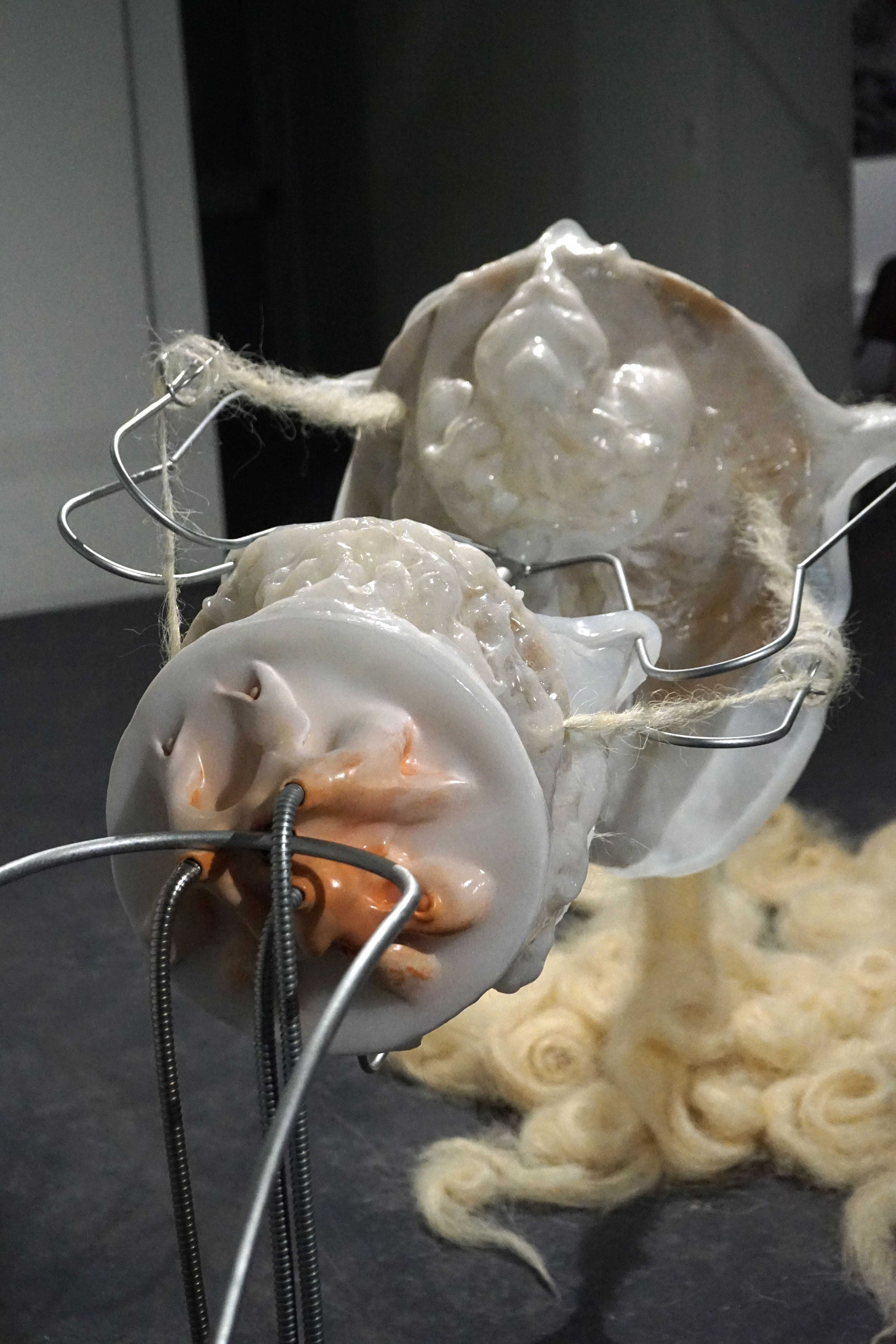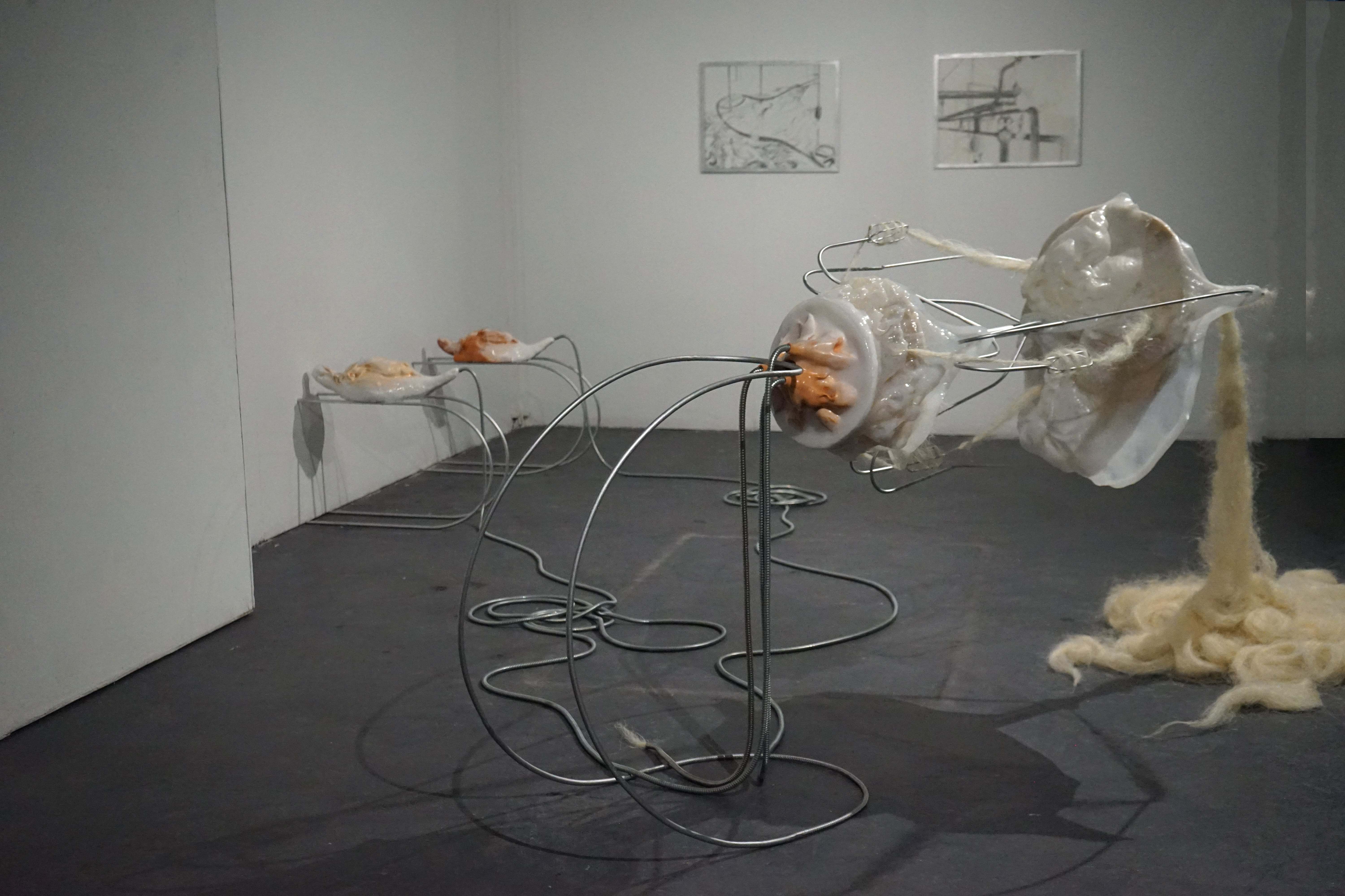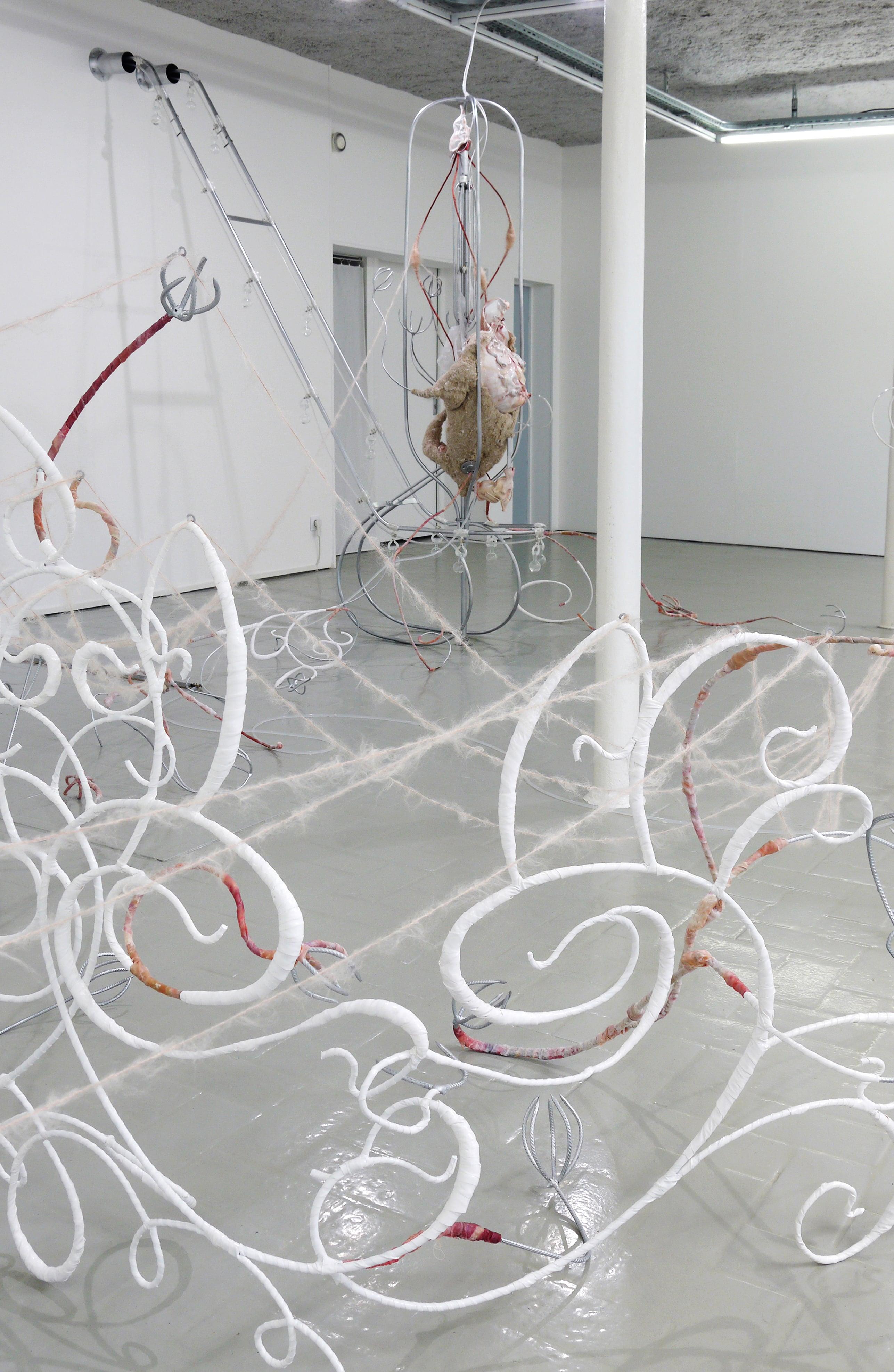 "AnaĂŻs Gauthier's immersive installations simulate life that stubbornly persists in the face of failure. She creates all kinds of chain reactions within a paradoxical ecosystem where the organic and the mechanical merge without ever quite managing to come to terms with each other. Exhaustion is symptomatic of this mutual rejection. Yet these technological reliquaries and autoimmune forms depend on each other. Connected, wired, intubated, they are linked by a makeshift system that keeps them in a state of mutual motor and emotional distress. This invasive apparatus forces them to share everything: the resources they generate as well as those they excrete. Limited, does this body-machine have any choice but to resist? "