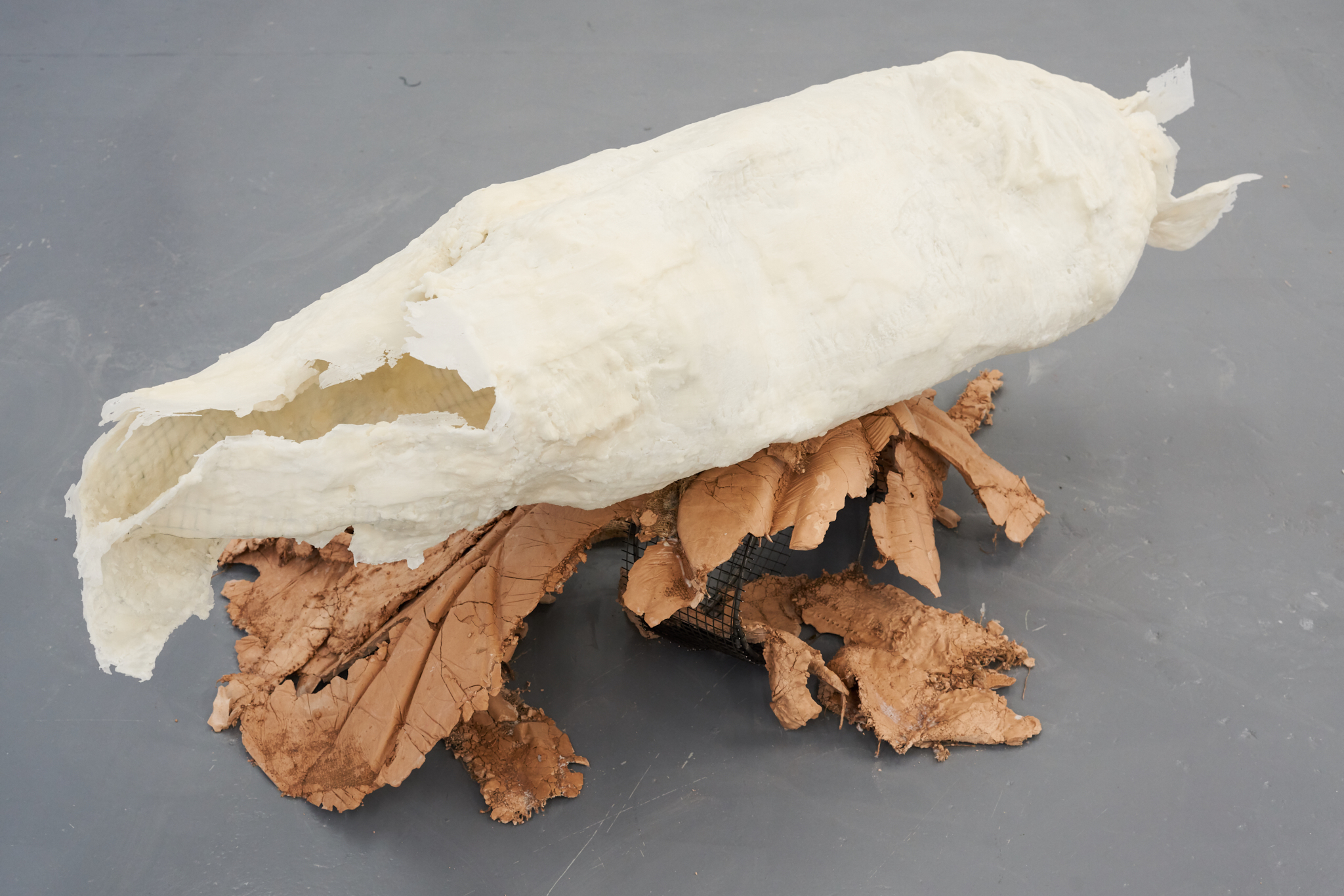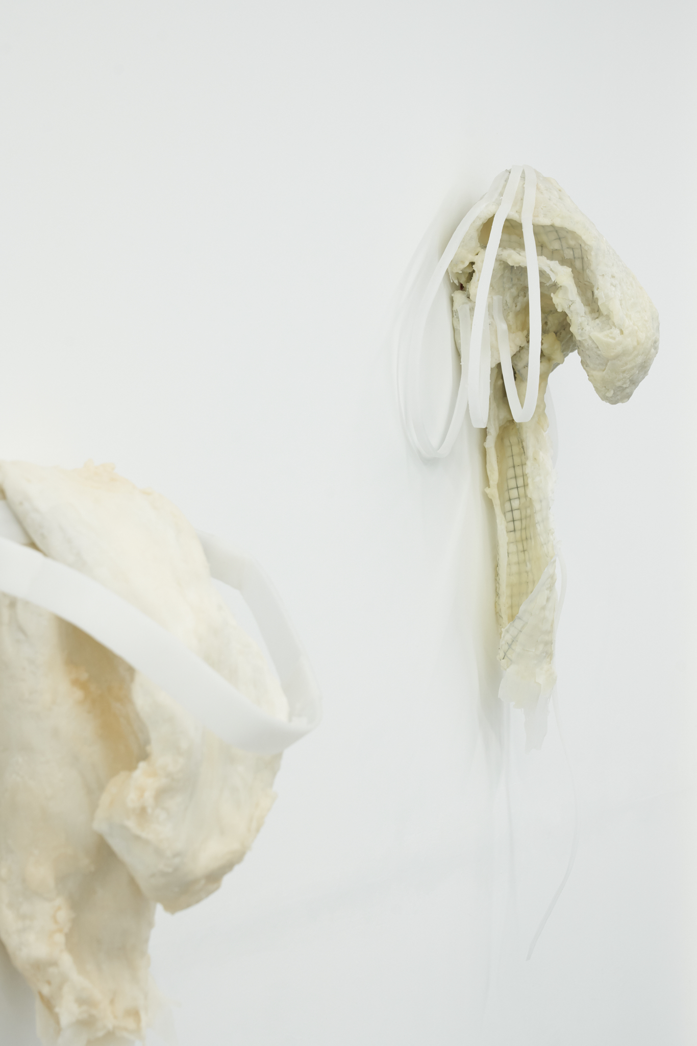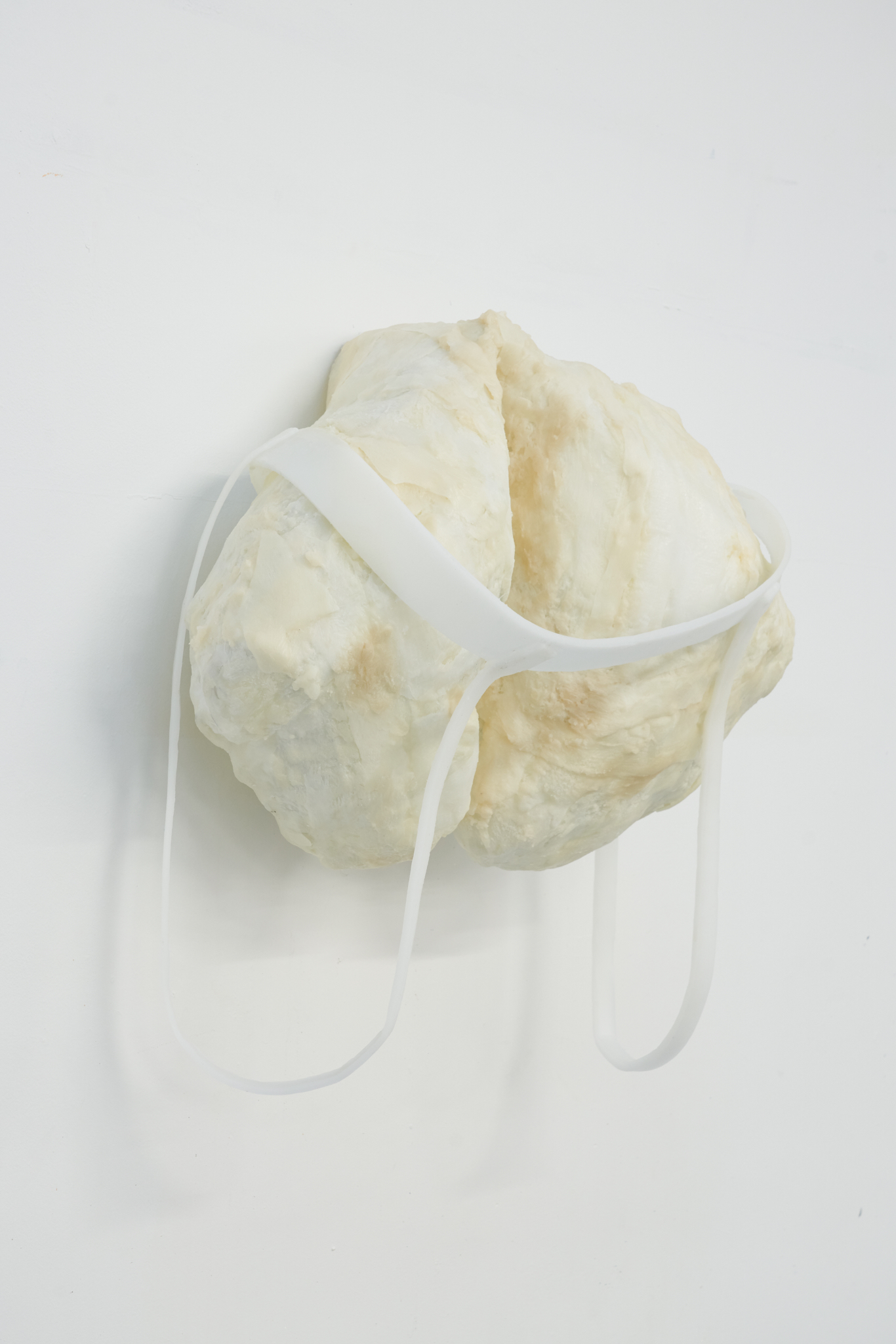 Valentino Vannini’s codpieces draw on hyper-masculinity, allowing fragility to surface within it. They reference on visual languages from gay culture through soft padding, straps, jockey wear, and sportswear, highlighting the erotic charge of garments that shape and frame the body. Recast in materials such as wall construction-grade plaster and wax, the works playfully yet confrontationally address the viewer.